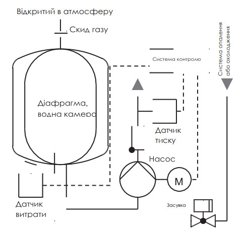 • Рідина розширення перебуває в бутілкаучуковій мембрані під атмосферним тиском