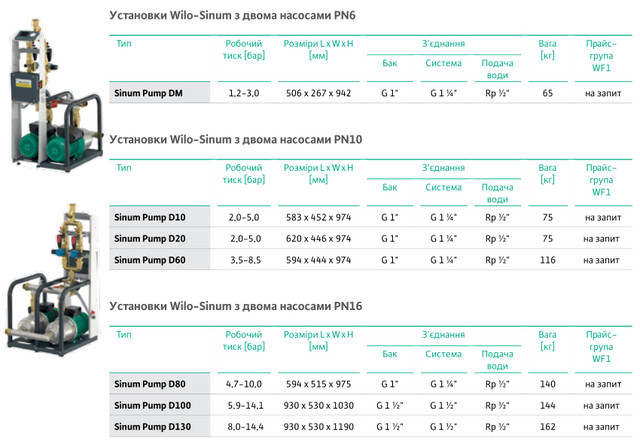 • Автоматичні установки Wilo-Sinum використовуються для підтримки постійного тиску, автоматичного підживлення і видалення повітря в замкнутих контурах системи опалення або холодопостачання.