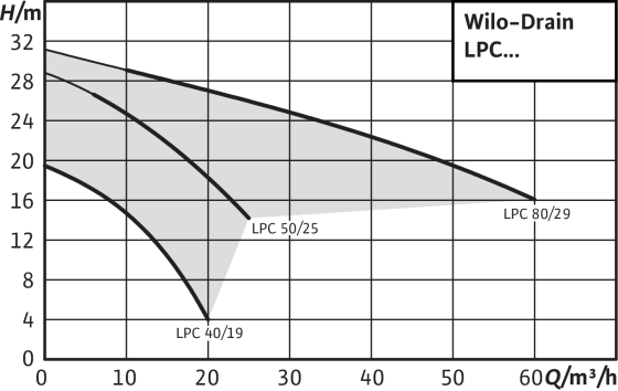| Під'єднання до всмоктуючих і напірного патрубка: | LPC 40: R 1½ LPC 50: G 2 LPC 80: G 3 |