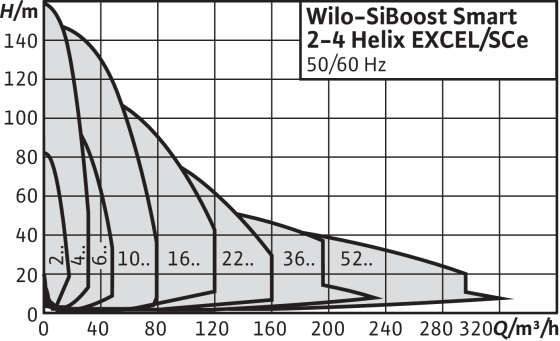 2 – 4 насоси на установку типорядів від Helix EXCEL 2 до Helix EXCEL 52 з високоефективним стандартним ЕС-двигуном IE5 і регулюванням числа обертів за допомогою вбудованого частотного перетворювача на кожному насосі.