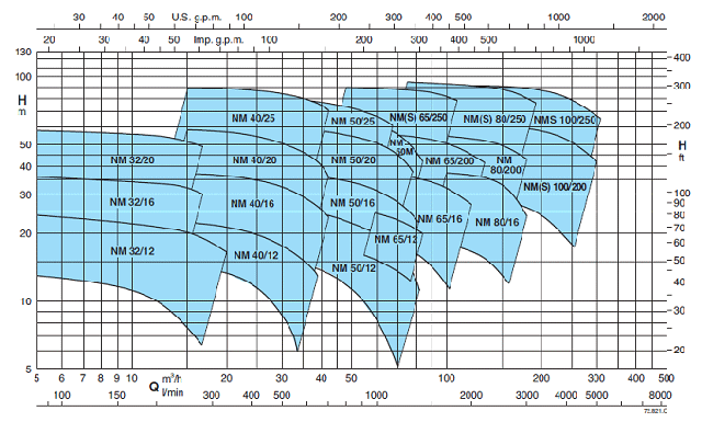 Відцентрові моноблочні насоси Calpeda NM, NM EI і NMS з двигунами 2900 об/хв призначені для холодного і гарячого водопостачання, підвищення тиску в мережі подачі води, використовуються в установках теплопостачання, кондиціювання та циркуляції, в побутовій і промисловій сфері. Так само в протипожежних установках. Максимальна продуктивність насосів NM і NMS — 300 м3/год, напір 95 м.