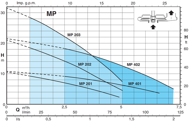 | MPM | монофазний 230 В (±10%) з поплавковим вимикачем і термозахисним пристроєм |