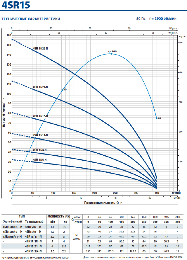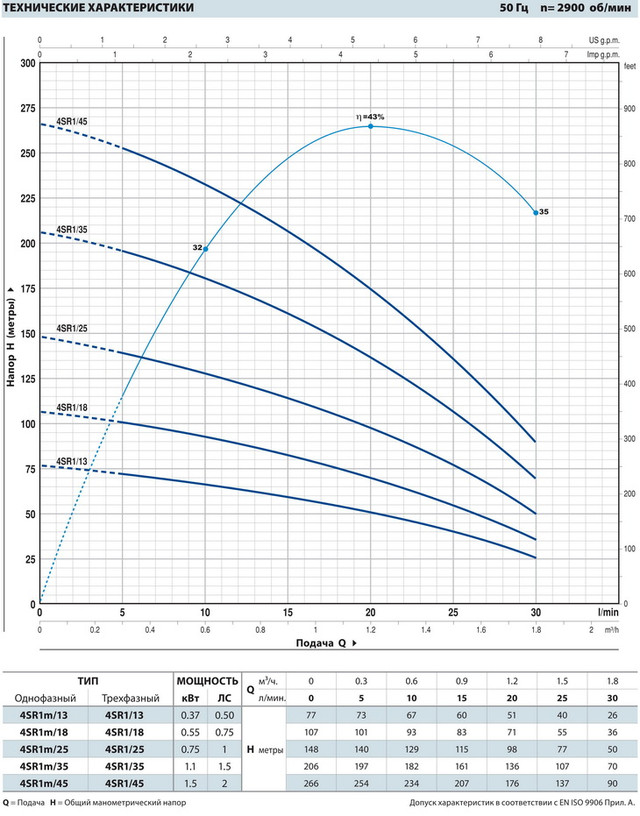 – 3.5 м при мощности в 7.5 кВт 4SR-PD