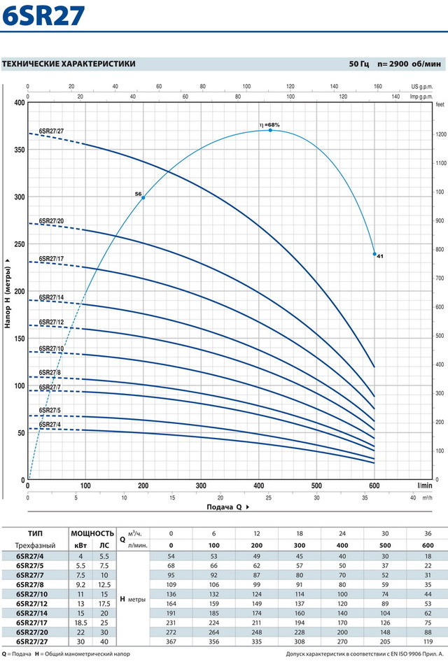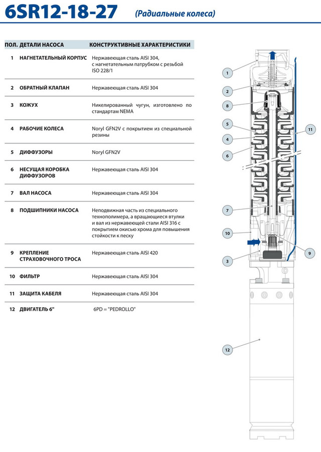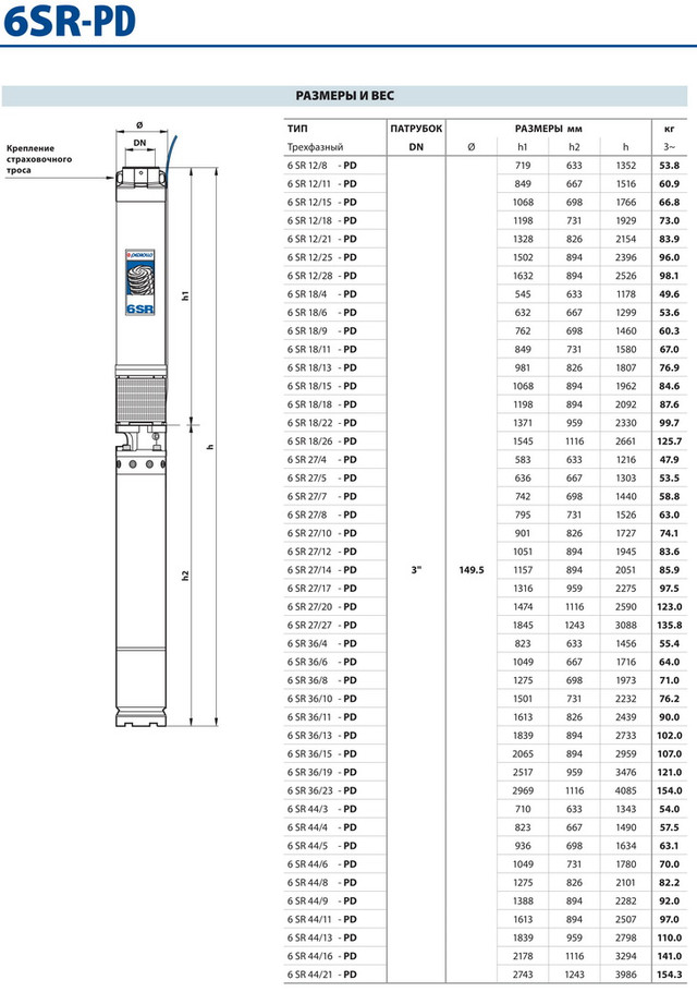 – 3.5 м при потужності в 7.5 кВт 4SR-PD
