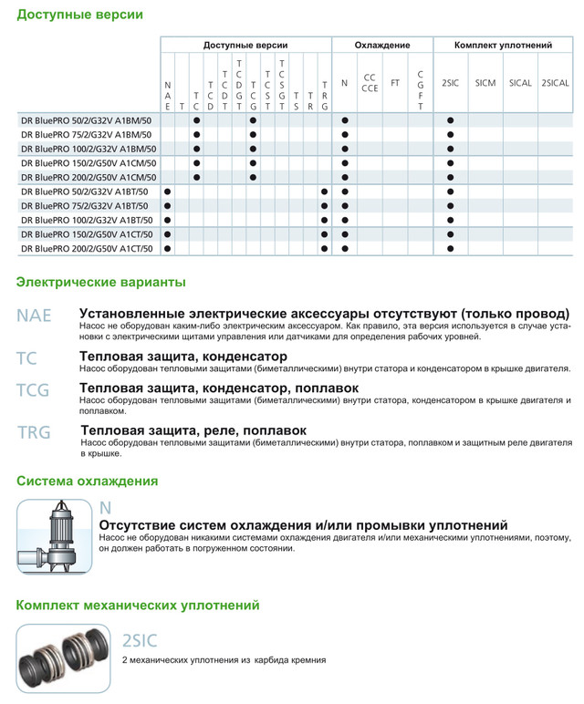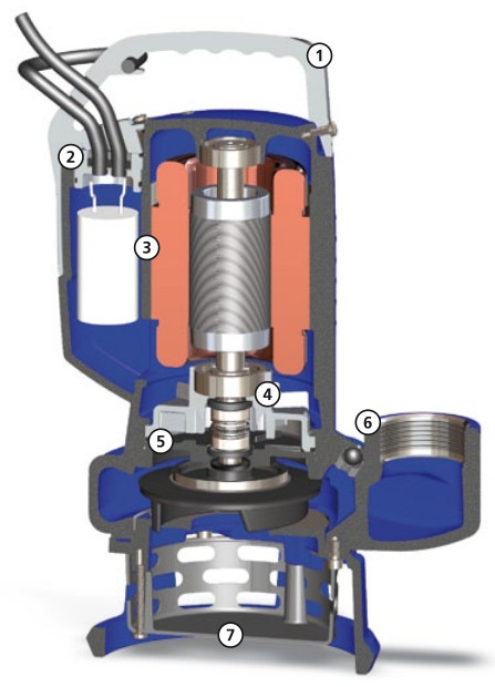 Чавунний електромеханічний комплекс EN-GJL-250, призначений для заглибної роботи, укомплектований 2 Опозитними механічними ущільненнями з карбіду кремнію в оливній камері, V-подібним кільцем, що безпосередньо контактує з рідиною. Екологічний двигун сухого типу. Литий гідравлічний корпус з оболонкою двигуна.