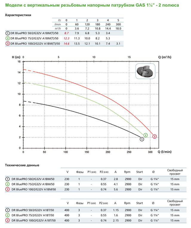 | Напір | GAS 1¼ - 2" Вер. |