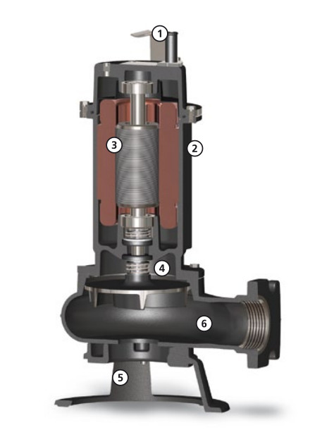 Чавунний електромеханічний комплекс EN-GJL-250, призначений для занурювальний роботи. Комплект ущільнень, що складається з 1 механічного ущільнення з карбіду кремнію і 1 механічного ущільнення з графіто-глиноземний суміші, оппозитнособранных і смазывающихся маслом. Двигун в масляній ванні.