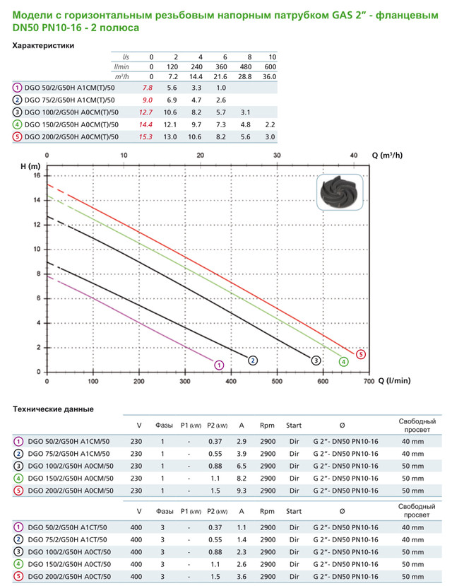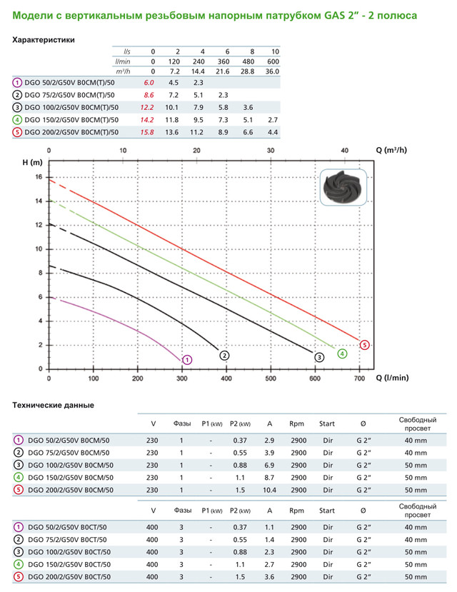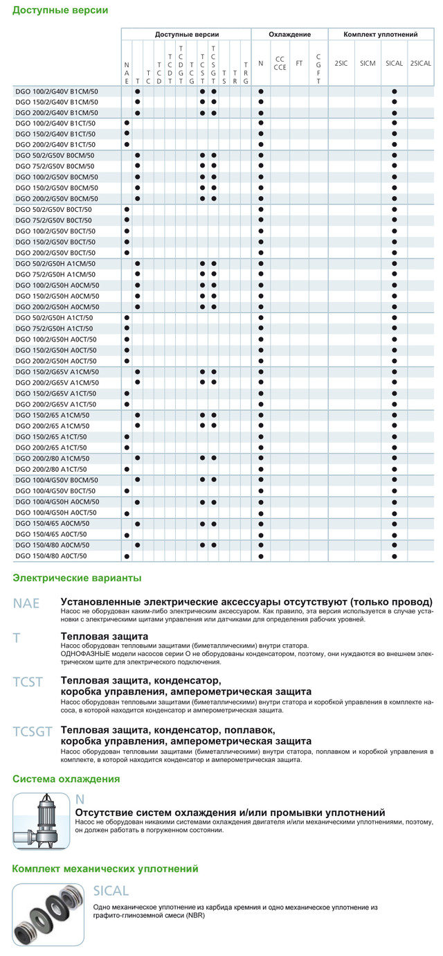 ЗАНУРЮВАЛЬНІ ФЕКАЛЬНІ НАСОСИ З РОБОЧИМ КОЛЕСОМ ТИПУ VORTEX) DGO, Серія O Сімейство DRAGA (DG)