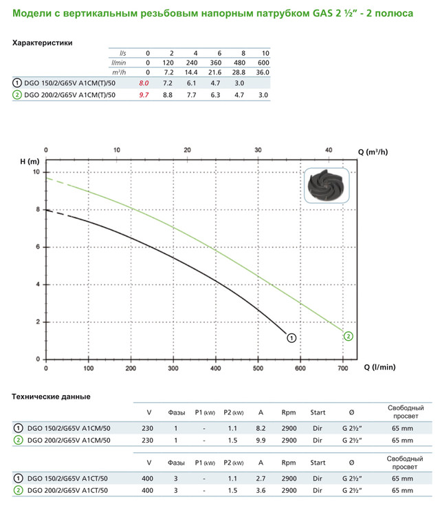 - Напір GAS 1½"÷ 2 ½ " Верт.