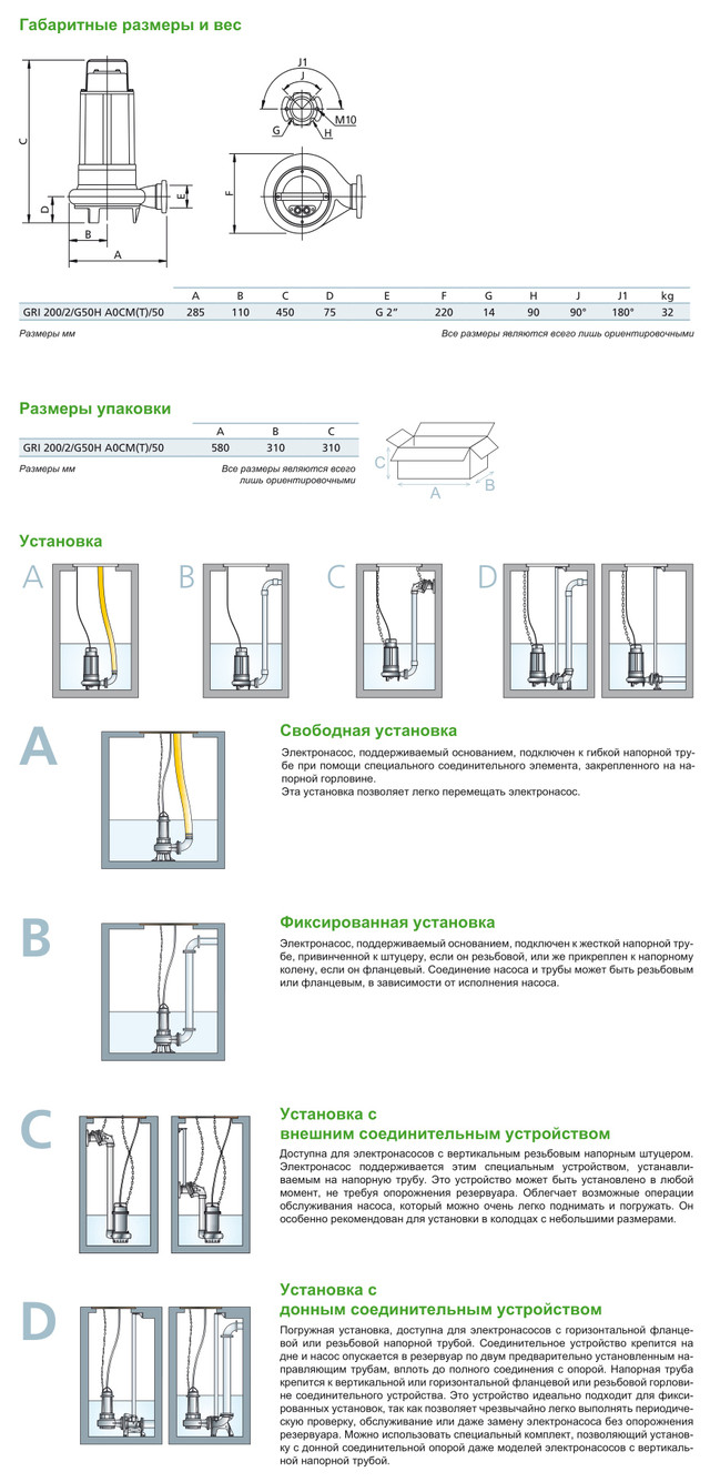 ПОГЛЯДНІ ФЕКАЛЬНІ НАСОСИ З ЗМІЛЬЧОВИМ СТРУСТОМ GRI, I Семейство GRINDER (GR)