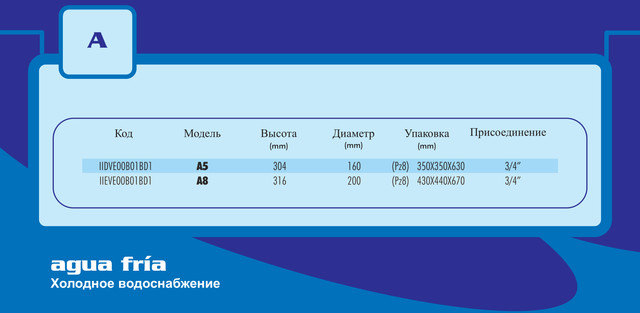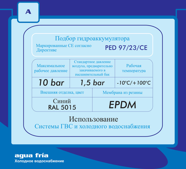 | Артикул | Модель/об'єм, л | Макс/уст. давл. ,bar | Висота, мм | Діаметр, мм | Приєднання | Ціна з НДС в евро |