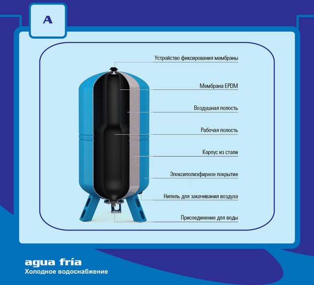 Гідроакумулятори призначені для підтримки робочого тиску в системі водопостачання, запобігання руйнуванню системи від гідравлічного удару, зменшення кількості увімкнень-вимикань насоса та компенсації температурного розширення води в системе ГВС
