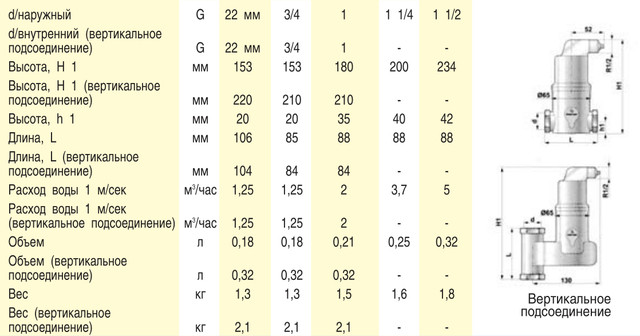 | Приєднання | внутрішня різьба 3/4", 1", 11/4", 11/2", 2" |