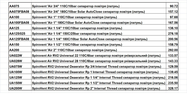 Конструктивні властивості сепараторів повітря SpiroVent Air