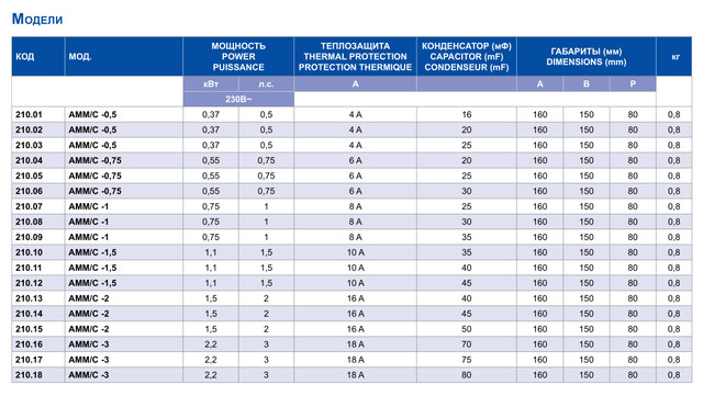 Серія пультів для керування й захисту монофазного двигуна з теплозахистом і пусковим конденсатором.