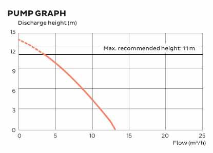 • підвищена продуктивність до 13 м3/год, і висота відкачування до 13 м за незмінної споживаної потужності;